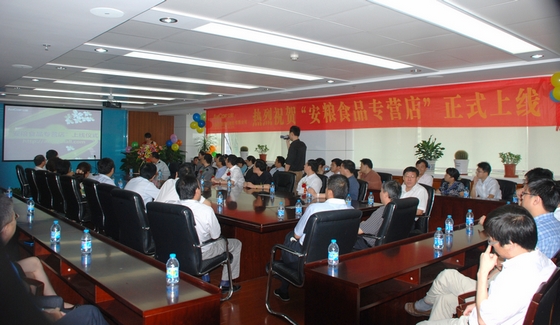 經(jīng)過5個月的精心籌備,7月20日上午11:30分,公司電子商務平臺——“安糧食品專營店” ( http://alsp.tmall.com)在15樓會議室舉行隆重的上線儀式,公司管理層以及各子公司、各部門代表60余人參加了上線儀式。