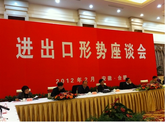 2月11日下午,商務(wù)部部長(zhǎng)陳德銘在合肥主持召開(kāi)了進(jìn)出口形勢(shì)座談會(huì)。安徽省副省長(zhǎng)花建慧、省政府副秘書長(zhǎng)張武揚(yáng)、省商務(wù)廳廳長(zhǎng)方西屏,商務(wù)部國(guó)際貿(mào)易談判代表秘書局局長(zhǎng)兼辦公廳副主任沈丹陽(yáng)、政研室主任張向晨、流通發(fā)展司司長(zhǎng)向欣、外資司司長(zhǎng)劉亞軍等領(lǐng)導(dǎo)以及安徽省12家重點(diǎn)進(jìn)出口企業(yè)代表參加了會(huì)議。