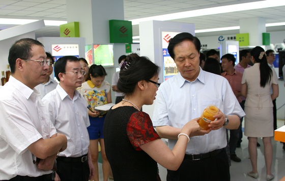 7月15日,省委書記張寶順在合肥市委書記吳存榮、市長張慶軍和省商務(wù)廳廳長曹勇、省國貿(mào)集團董事長范陽等領(lǐng)導(dǎo)的陪同下蒞臨安糧實業(yè)外貿(mào)創(chuàng)意研發(fā)公共服務(wù)平臺綜合展廳視察。