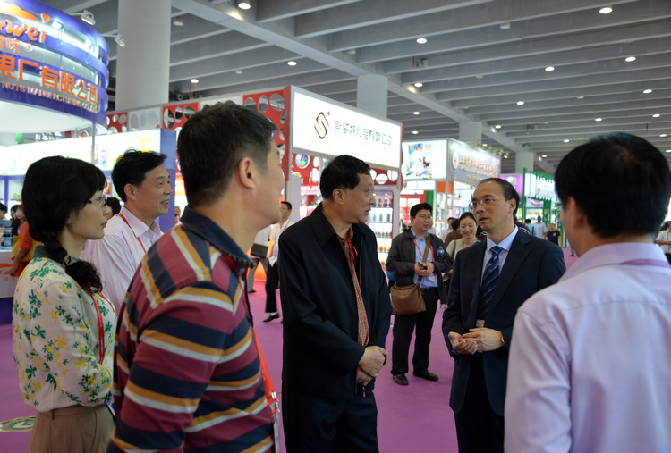 省商務(wù)廳王曉陽(yáng)副巡視員(中)巡視公司展位