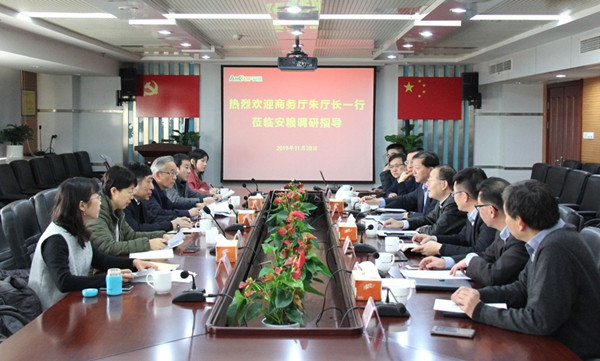 11月28日,安徽省商務廳朱丹副廳長到公司開展外貿工作調研,一同調研的有省商務廳貿發(fā)處、貿管處、產業(yè)處相關領導。國貿集團黨委書記、董事長范陽率安糧集團領導班子及貿易板塊主要負責人參加調研座談。